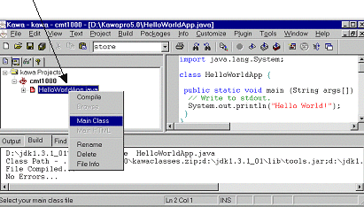 Please note that that a project may contain more than one program, therefore you must tell Kawa which program you which to compile/Run.